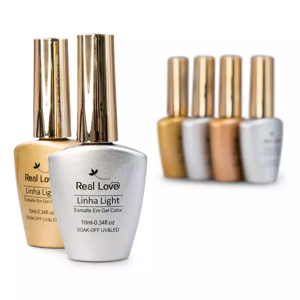 Kit Esmalte em Gel Real Love Coleção Glitter Prata e Dourado - 6 cores